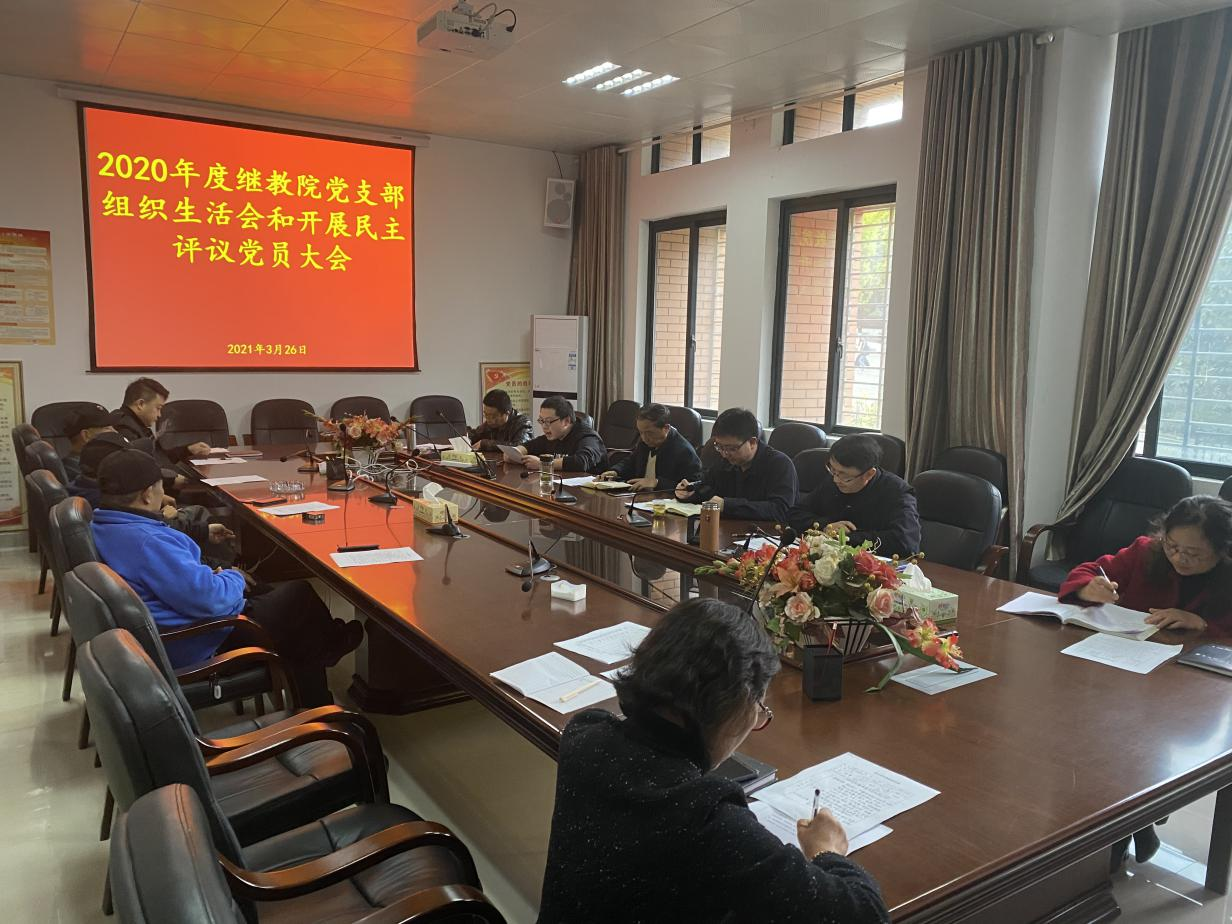 杨利军同志首先代表党支部向全体党员同志通报了继教院2020年度工作报告,深度剖析了去年一年的工作中取得的成就以及存在的问题和不足,并提出在2021年的工作中,要从“干部思想建设”、“读书学习机制”、“党风廉政建设”等几个要点抓起,具体融入工作和生活,以提升党员干部自我修养,提高党性为根本目的,增强“四个意识”、坚定“四个自信”、做到“两个维护”,牢牢把握中央八项规定,吃准吃透相关政策法规,筑造“规范办学”的良好政治生态。